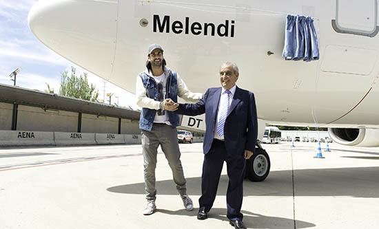 Ayer martes se ha procedido a “bautizar” un avión de Air Europa con el nombre del cantante Melendi. Se trata de un Boeing 737-800 destinado a cubrir rutas nacionales y europeas. Al acto acudieron Melendi y el presidente de Globalia, Juan José Hidalgo, quienes descorrieron la cortina que dejó al descubierto el nuevo nombre del avión.