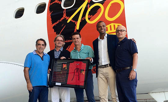La aeronave, que lucirá el escudo que conmemora los 100 años de historia del club, es un Embraer 195 destinado a cubrir rutas tanto europeas como nacionales.