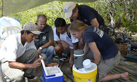 Cinco incubadoras y varias jaulas forman parte de los equipos del laboratorio adecuado en la Fundación Charles Darwin con un área de cuarentena para evitar el contagio de viruela y otras enfermedades. En ese lugar los científicos del Zoológico de San Diego y la FCD controlan el peso y humedad de los huevos, la alimentación de los polluelos 15 veces al día y mantienen grabaciones de sonidos de pinzones adultos para que se habitúen a sus colonias. Dos polluelos traídos en la primera extracción se encuentran estables, mientras que el primer polluelo incubado salió del cascarón el 10 de febrero. El sitio cuenta ya con ocho pichones nacidos.